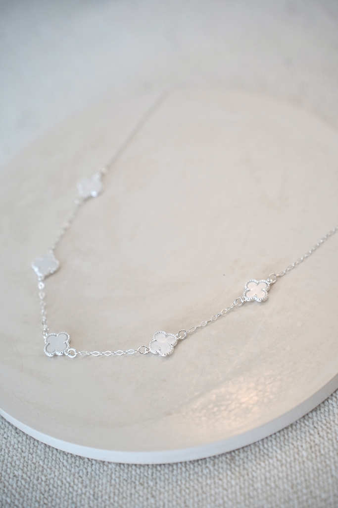 Com design inspirado na alta joalheria, o Colar Van Cleef II é uma peça elegante e atemporal. Composto por delicados trevos de quatro folhas intercalados na corrente, ele simboliza sorte, sofisticação e leveza. O acabamento em prata 925 garante brilho refinado e qualidade superior, ideal para quem busca um toque de elegância discreta no dia a dia ou em ocasiões especiais.